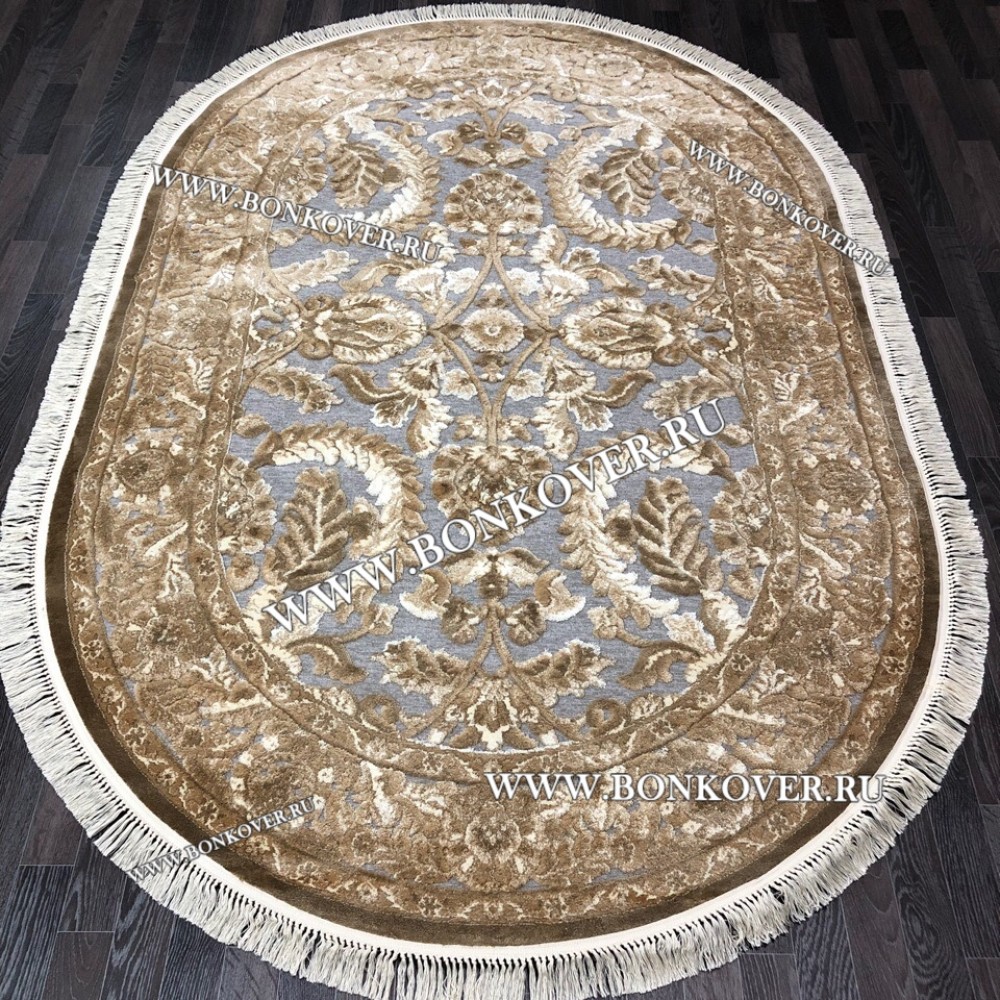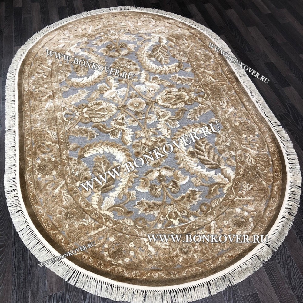 Шикарный Бельгийский Ковер для Гостиной Бежевый с Серым Арт 0001 Овальный наполняет интерьер помещения теплом и уютом, гармонично сочетает в себе изящество и красоту. Он соткан из высококачественного сырья, прочный и долговечный.