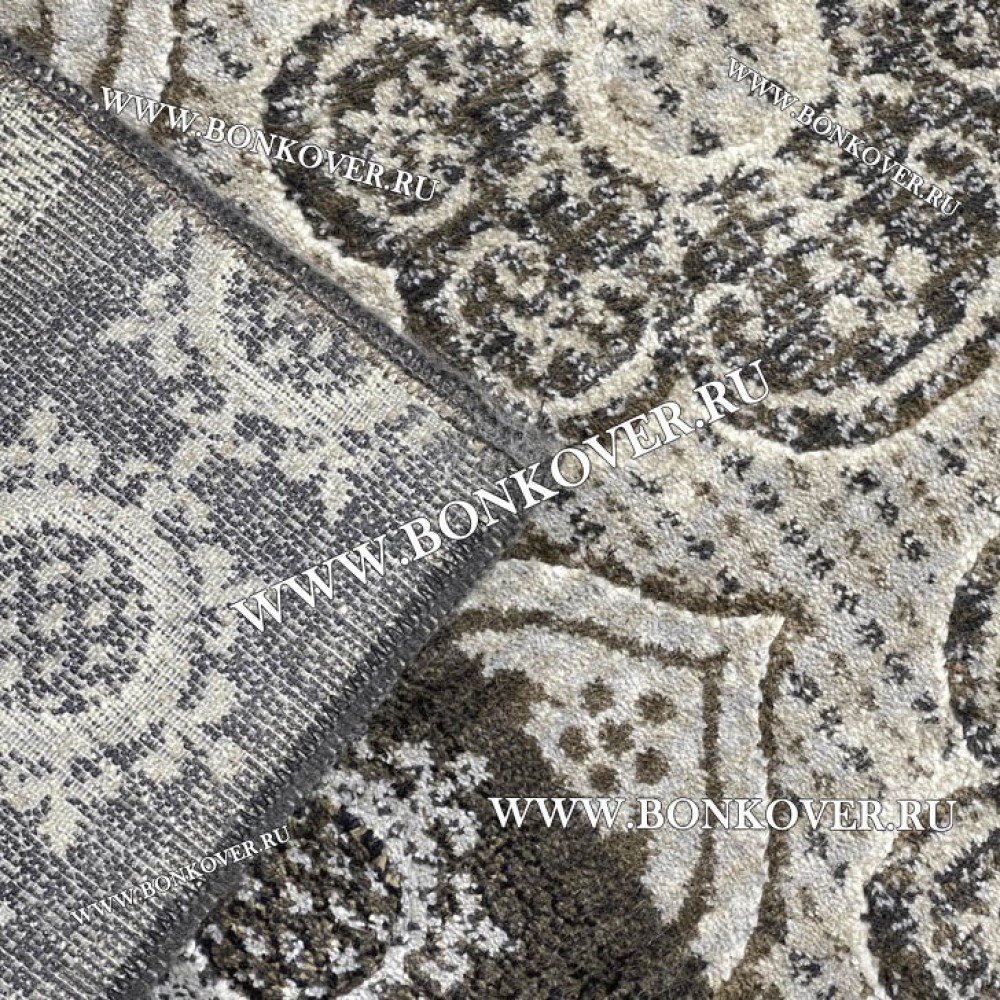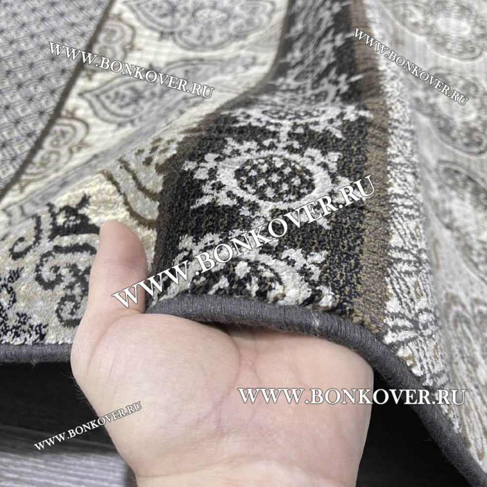 Красивый Бельгийский ковер из артшелка дизайн 128 Серый наполняет интерьер помещения теплом и уютом, гармонично сочетает в себе изящество и красоту. Он соткан из современных материалов, прочный и долговечный.