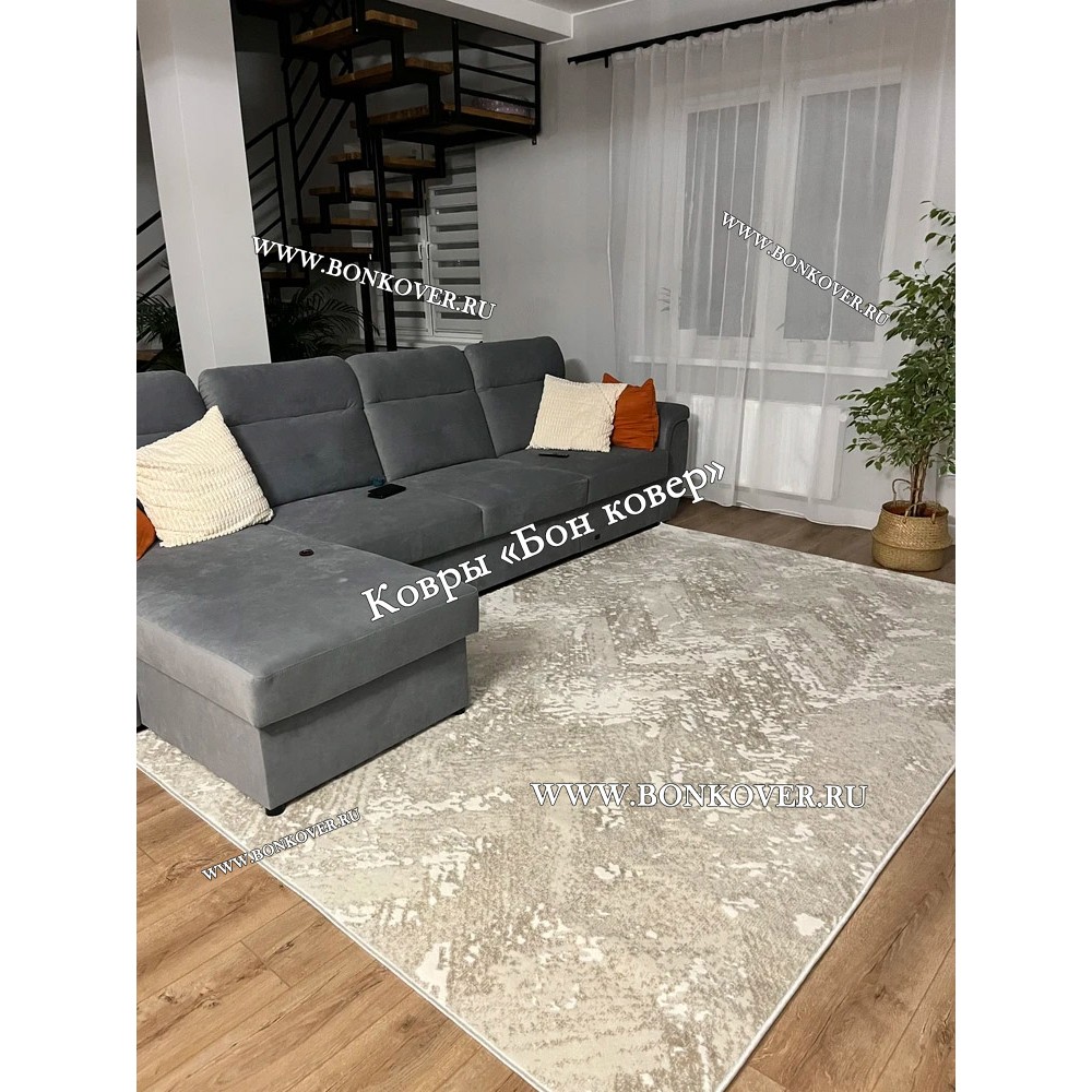Белый с Серым Ковер Для Гостиной Арт 29951 станет шикарным преображением жилого помещения, подчеркивая высокий статус владельца.