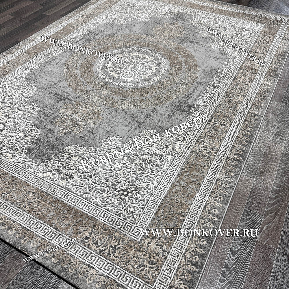Классический ковер дизайн 93 Коричневый с серым станет стильным преображением жилого помещения, подчеркивая высокий статус хозяина.