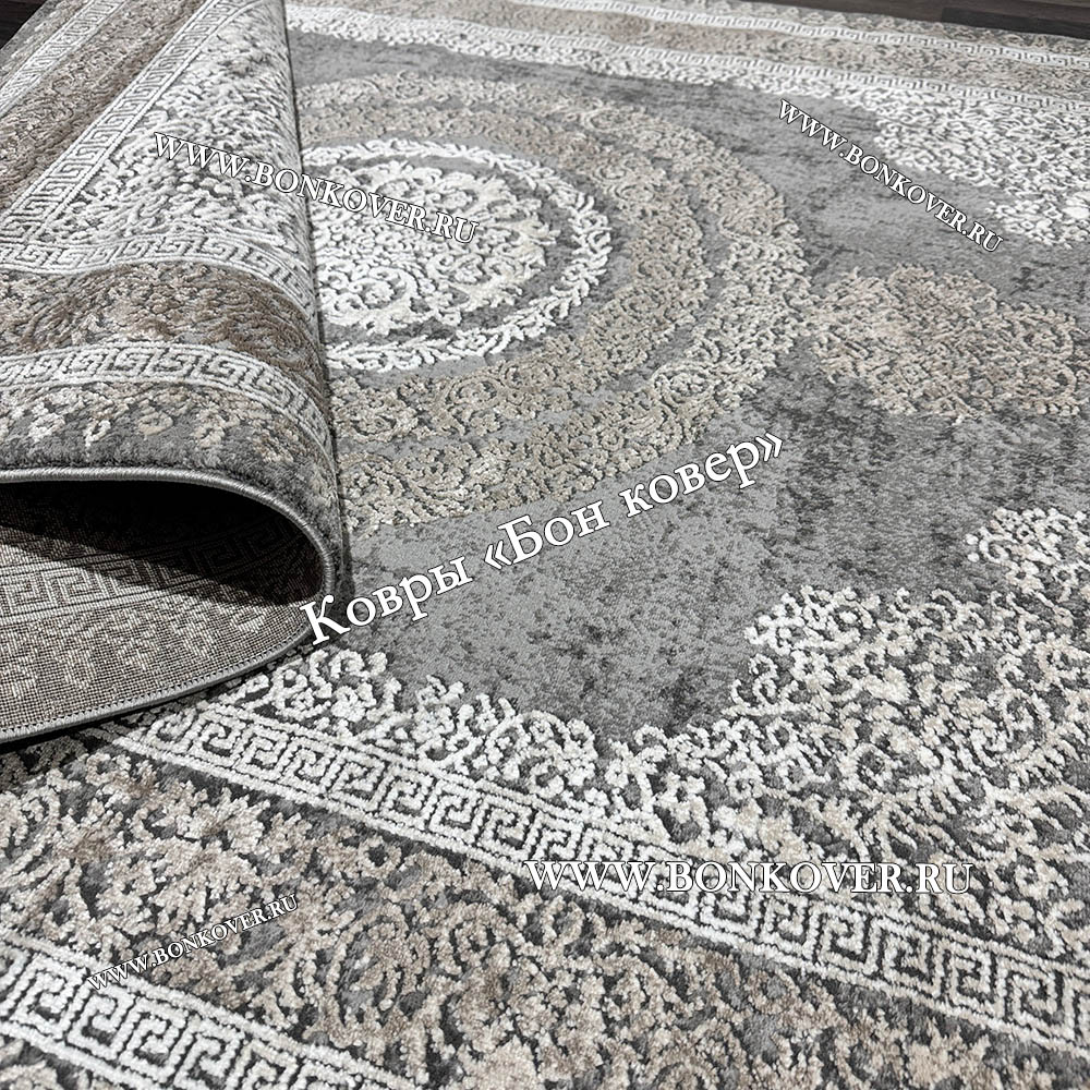 Элегантный Классический ковер дизайн 93 Коричневый с серым наполняет интерьер вашего дома теплом и уютом, гармонично сочетает в себе изящество и стиль. Он создан из высококачественного сырья, комфортный и долговечный.
