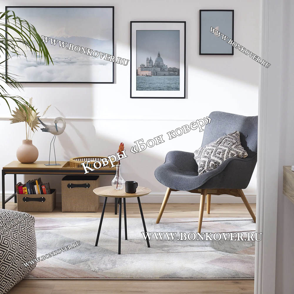 Хороший качественный ковер. Простой на первый взгляд рисунок при более детальном рассмотрении оказывается довольно интересным. Неброский, но и не скучный – достойно вписался в интерьер комнаты, отлично оживил обстановку. Чистка не требует особых усилий.