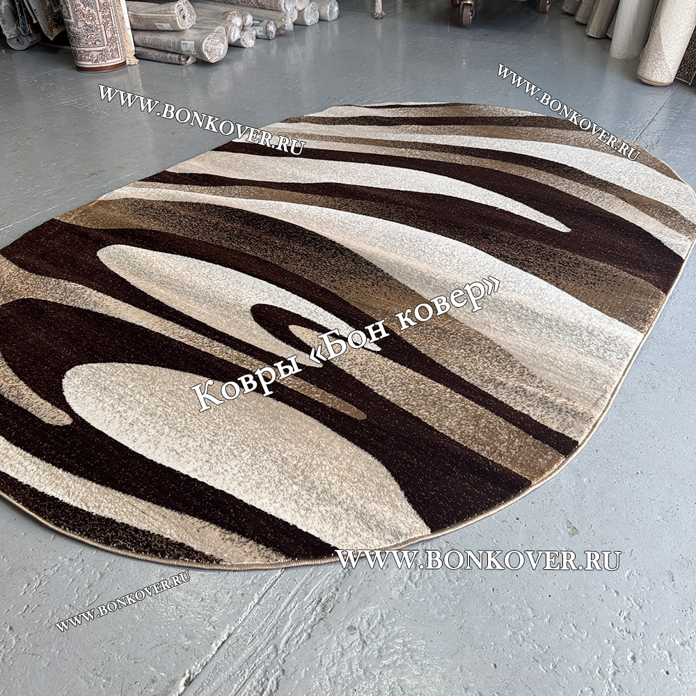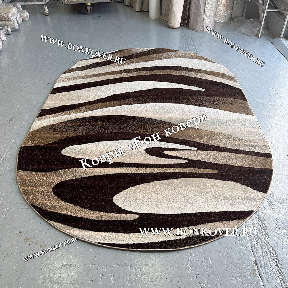 Ковер Карпет New 4 Дизайн 64 Коричневый с Бежевым Овал станет внезапным преображением жилого помещения, подчеркивая высокий статус владельца.