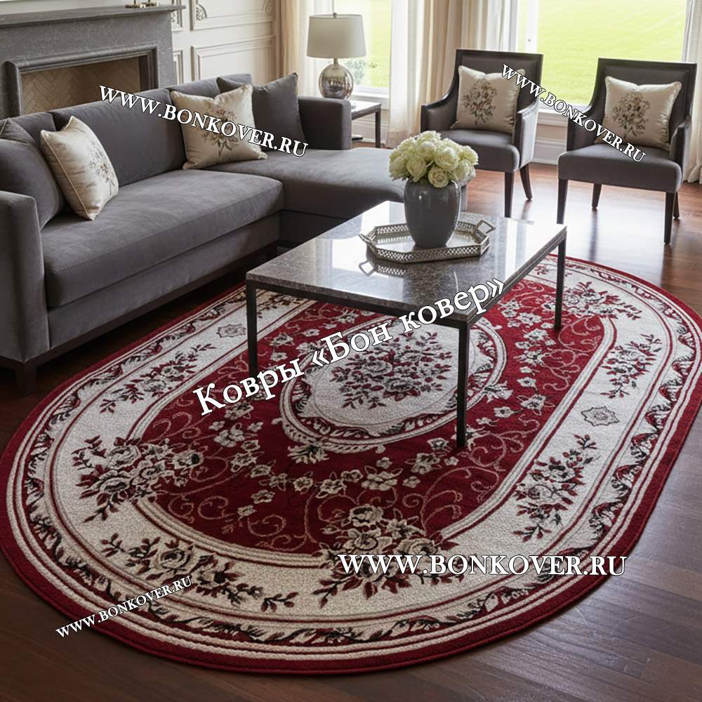 Ковер Лайт Карпет New 4 Дизайн 18 Красный Овал станет стильным преображением вашей комнаты, подчеркивая высокий статус семьи владельца.