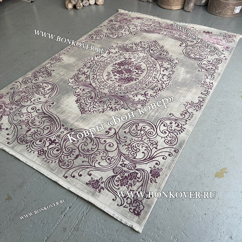 Ковер Турция Для Гостиной Дизайн 80 Сиреневый станет привлекательным дополнением интерьера, оформленного в современном или классическом стиле. Мягкое, но прочное, ковровое изделие обеспечивает тепло- и шумоизоляцию, отличается длительным сроком эксплуатации, пожаробезопасностью, экологичностью и высокой износостойкостью, является отличной преградой от повышенной влажности в помещении и утеплителем для холодного пола. Благодаря качеству материалов, ковер не деформируется, сохраняет первоначальный вид под тяжестью предметов мебели. За его поверхностью легко ухаживать.