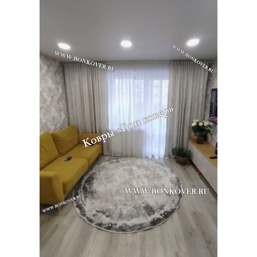 Элегантный Ковер в гостиную дизайн 08 Серый Круг наполняет интерьер жилого пространства теплом и уютом, гармонично сочетает в себе изящество и стиль. Он создан из износостойких материалов, прочный и долговечный.