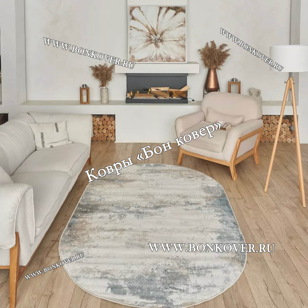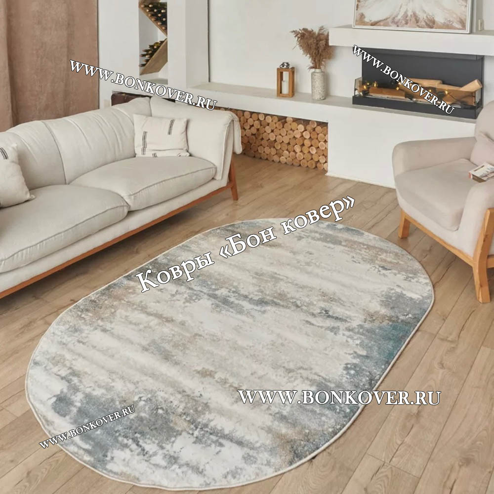 Импозантный Ковер в гостиную дизайн 140 Голубой с Бежевым Овал наполняет интерьер комнаты теплом и уютом, гармонично сочетает в себе изящество и стиль. Он изготовлен из высококачественных материалов, комфортный и долговечный.