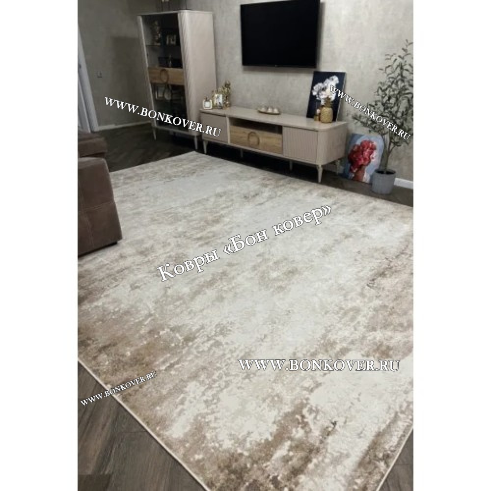 Импозантный Ковер в гостиную дизайн 142 Бежевый наполняет интерьер помещения теплом и уютом, гармонично сочетает в себе изящество и красоту. Он соткан из высококачественных материалов, прочный и долговечный.