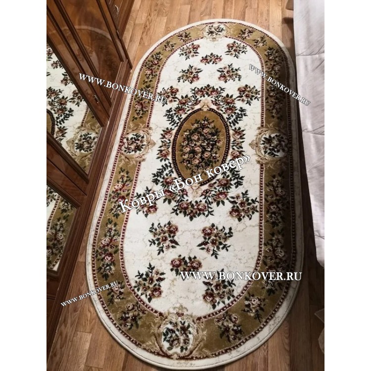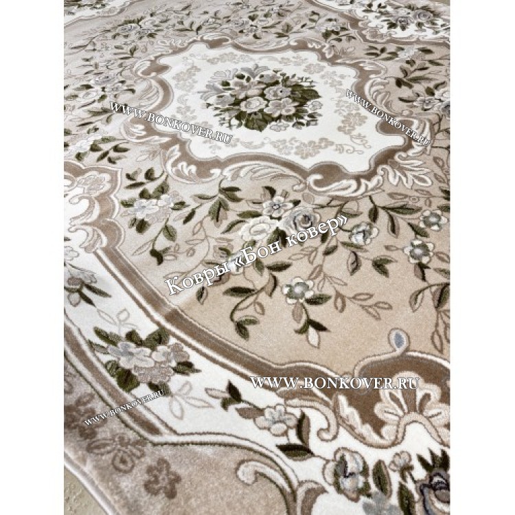 Элегантный Ковер в гостиную дизайн 143 Бежевый наполняет интерьер помещения теплом и уютом, гармонично сочетает в себе изящество и красоту. Он соткан из износостойких материалов, прочный и долговечный.