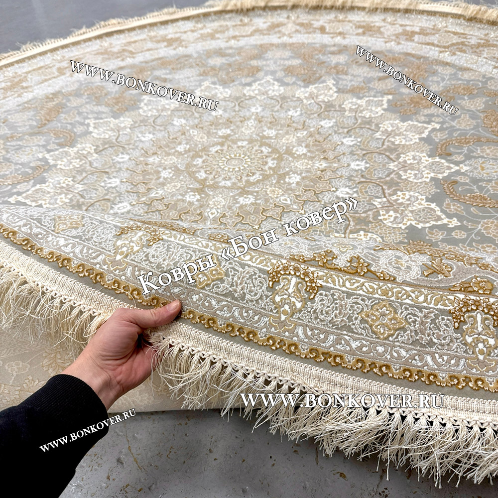 Импозантный Круглый Ковер Для Гостиной Арт 30256 наполняет интерьер комнаты теплом и уютом, гармонично сочетает в себе изящество и красоту. Он изготовлен из высококачественного сырья, комфортный и долговечный.
