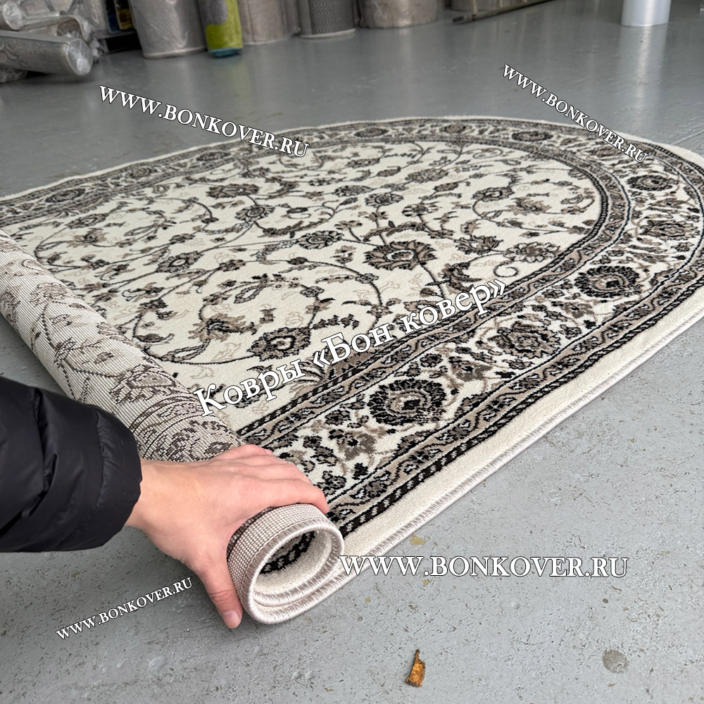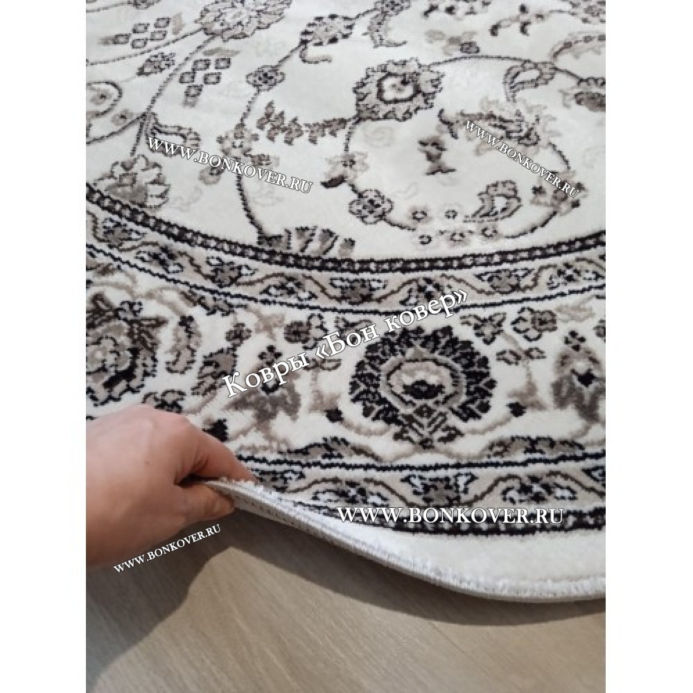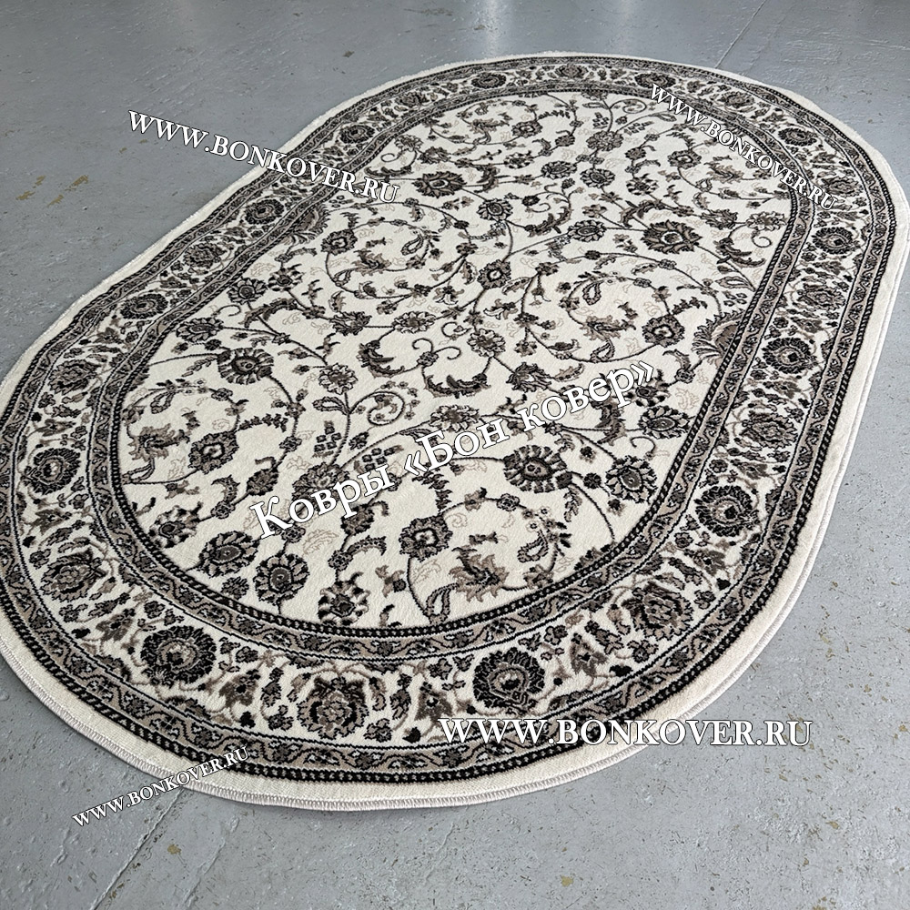 Элегантный Российский Овальный Ковер Белый Дизайн 23860 наполняет интерьер гостиной теплом и уютом, гармонично сочетает в себе изящество и красоту. Он выполнен из износостойких материалов, комфортный и долговечный.