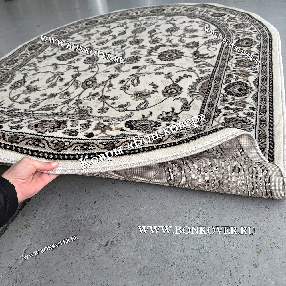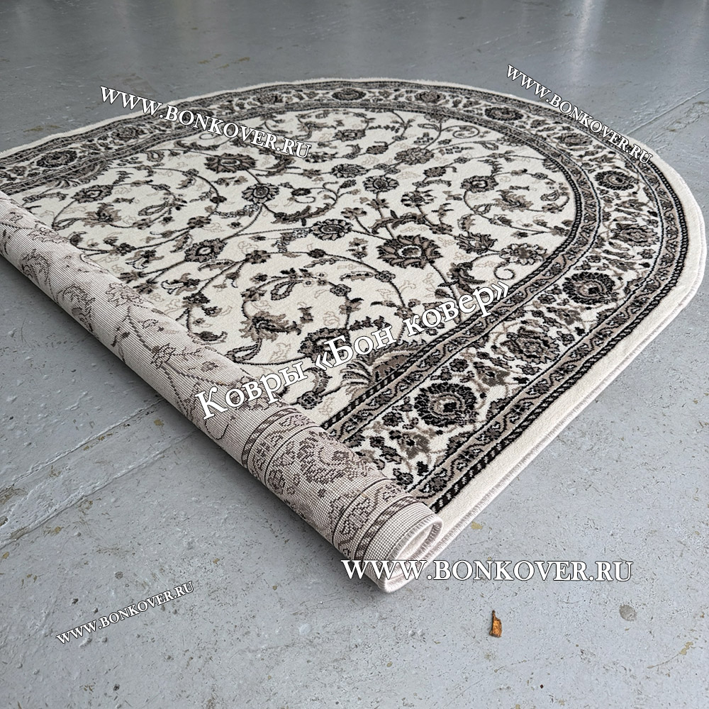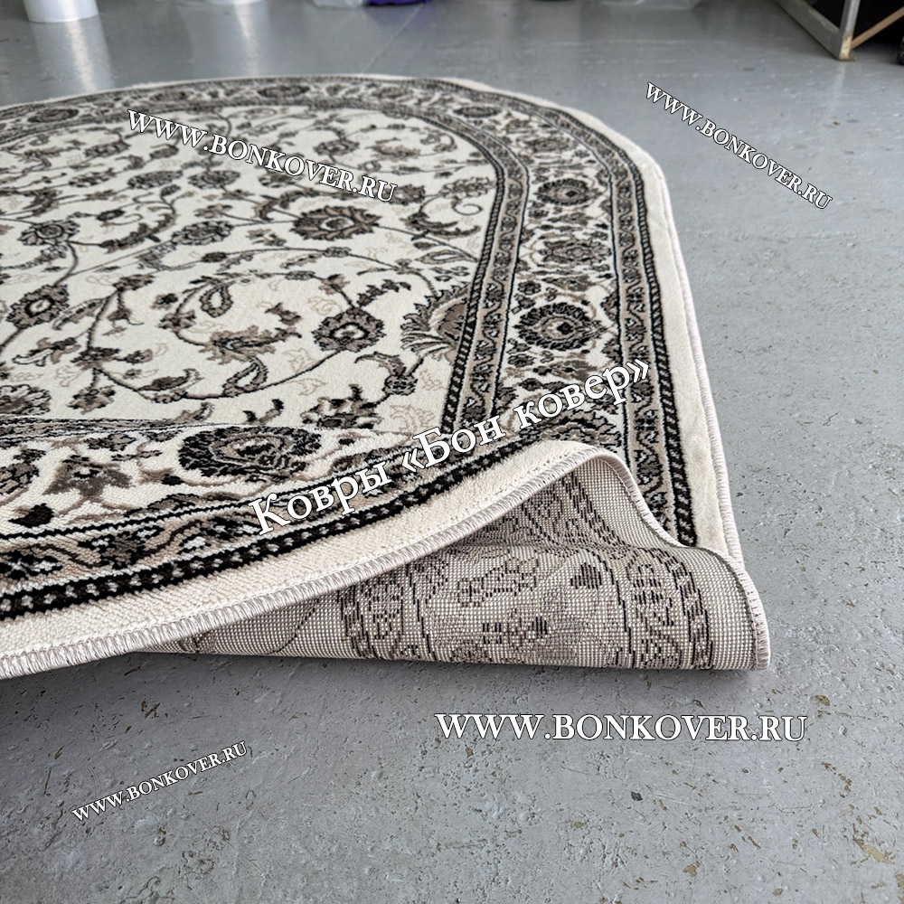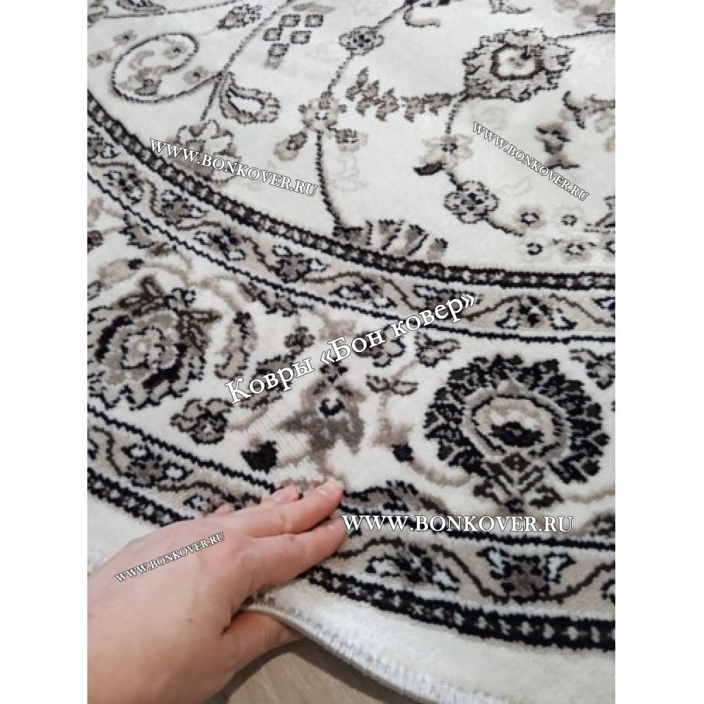 Элегантный Российский Овальный Ковер Белый Дизайн 23860 наполняет интерьер гостиной теплом и уютом, гармонично сочетает в себе изящество и красоту. Он выполнен из износостойких материалов, комфортный и долговечный.