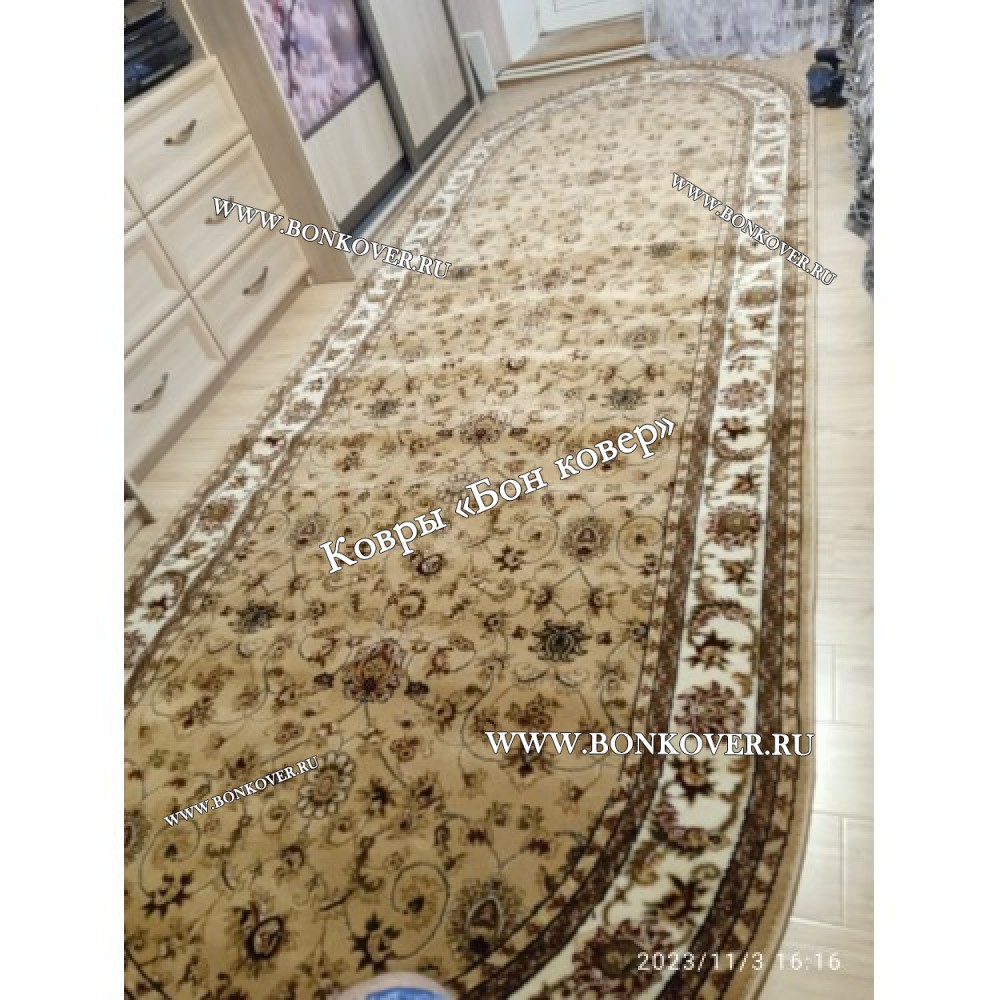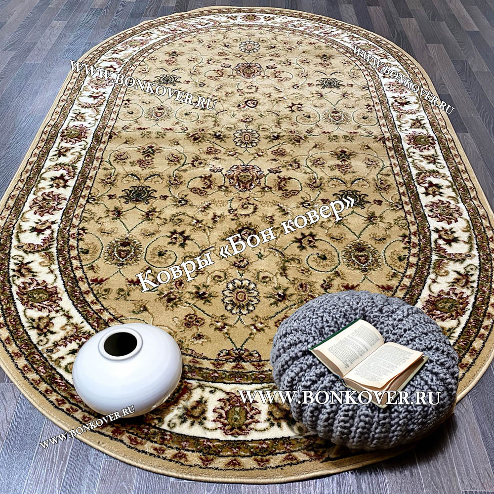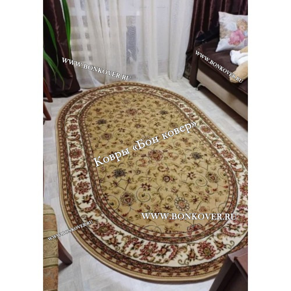 Импозантный РОССИЙСКИЙ ЖАККАРДОВЫЙ КОВЕР БЕЖЕВЫЙ ОВАЛЬНЫЙ наполняет интерьер вашего дома теплом и уютом, гармонично сочетает в себе изящество и стиль. Он создан из высококачественного сырья, комфортный и долговечный.