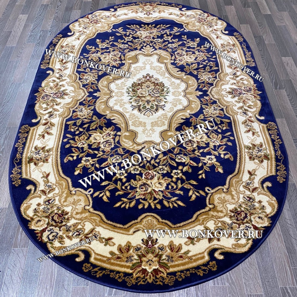 РОССИЙСКИЙ ЖАККАРДОВЫЙ КОВЕР МЕДАЛЬОН СИНИЙ ОВАЛЬНЫЙ станет стильным преображением вашей комнаты, подчеркивая высокий статус семьи владельца.