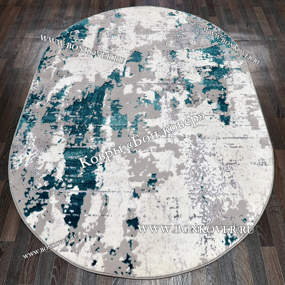Элегантный Современный ковер для комнаты 02 Бирюзовый Овал наполняет интерьер комнаты теплом и уютом, гармонично сочетает в себе изящество и красоту. Он изготовлен из экологически чистого сырья, комфортный и долговечный.