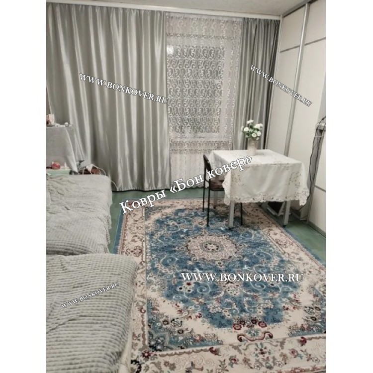 Современный ковер для комнаты 12 Бежевый с синим станет стильным преображением жилого помещения, подчеркивая высокий статус семьи владельца.