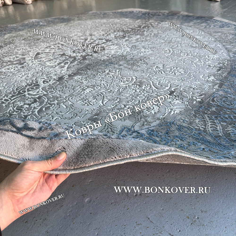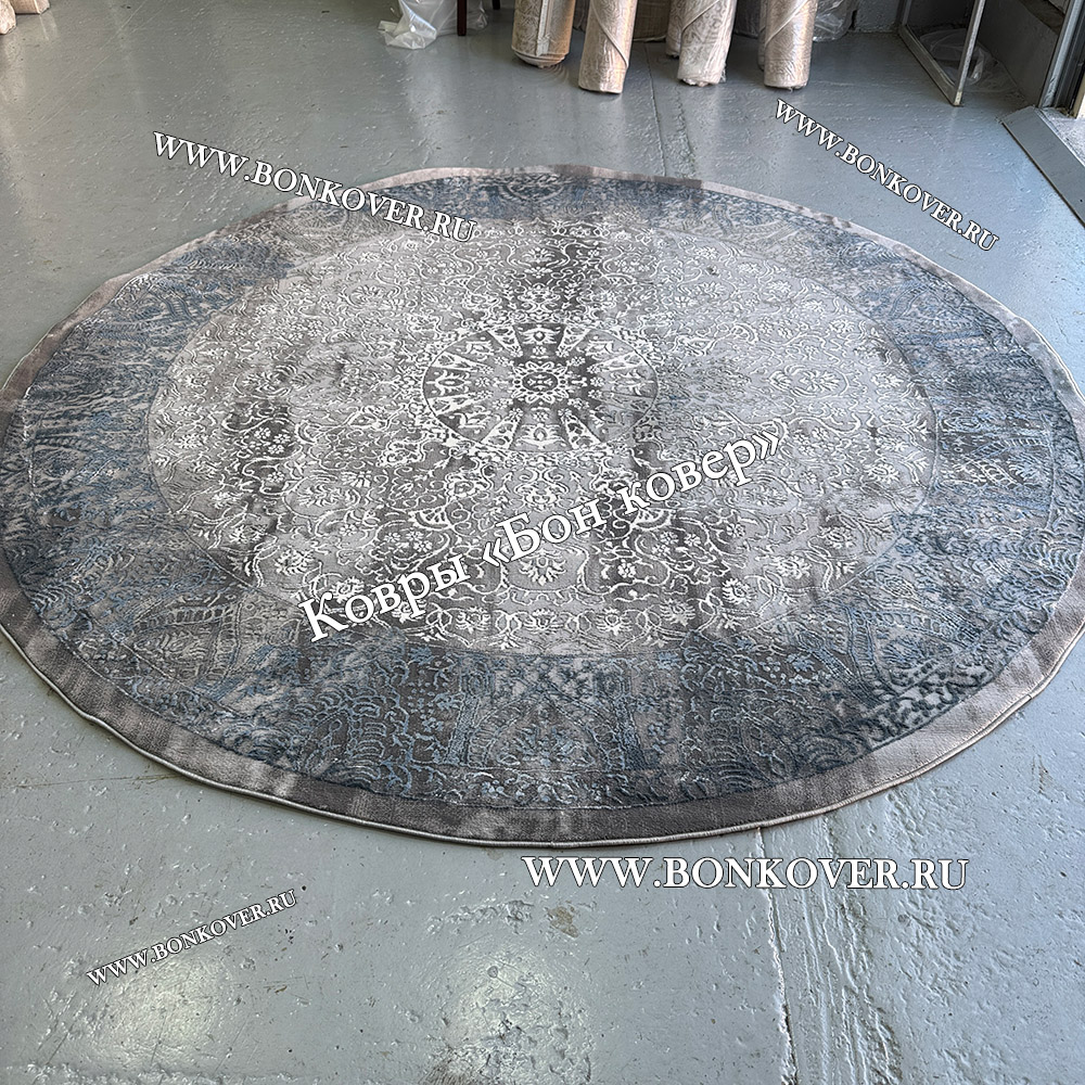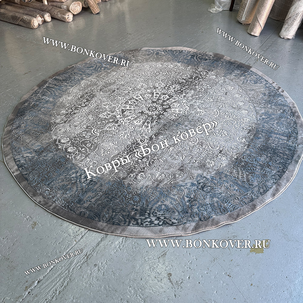 Красивый Турецкий Ковер Для Гостиной Дизайн 31 Синий с Серым Круг наполняет интерьер комнаты теплом и уютом, гармонично сочетает в себе изящество и стиль. Он изготовлен из высококачественного сырья, комфортный и долговечный.