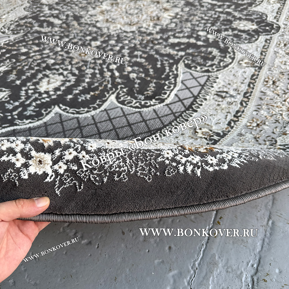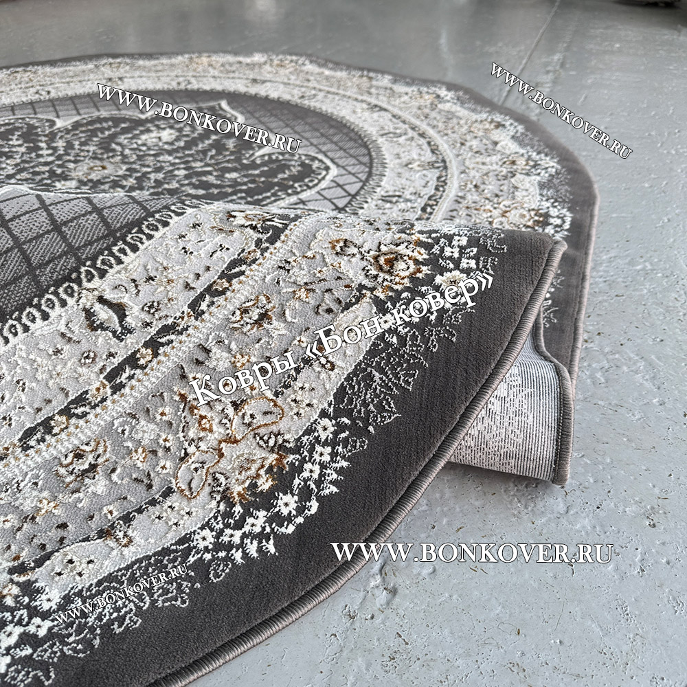 Изящный Турецкий Ковер Для гостиной New дизайн 89 Серый Овал наполняет интерьер квартиры теплом и уютом, гармонично сочетает в себе изящество и красоту. Он соткан из экологически чистого сырья, прочный и долговечный.
