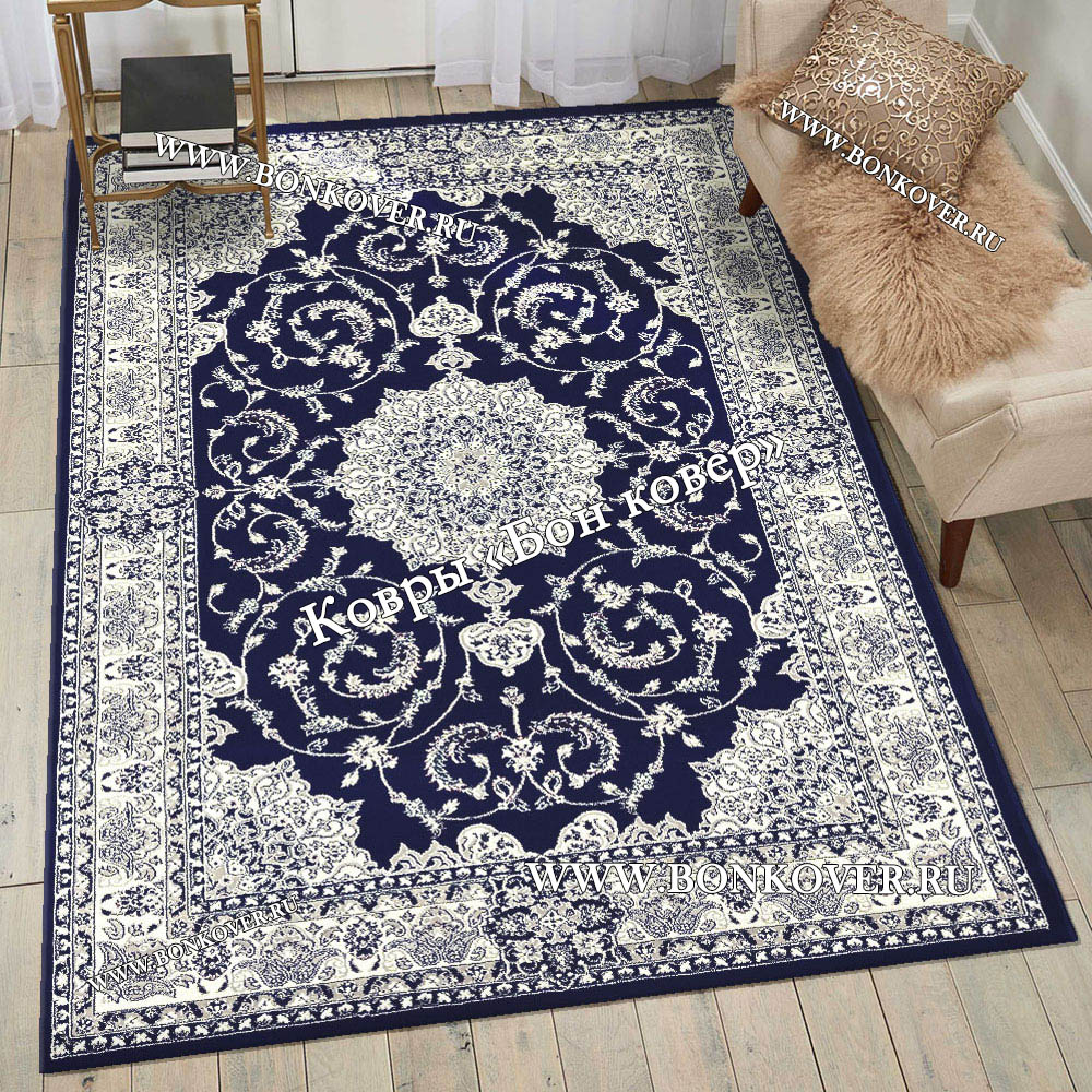 Турецкий Ковер Медальон дизайн 73 Синий станет великолепным преображением жилого помещения, подчеркивая высокий статус хозяина.