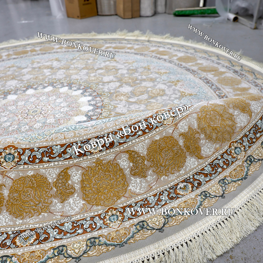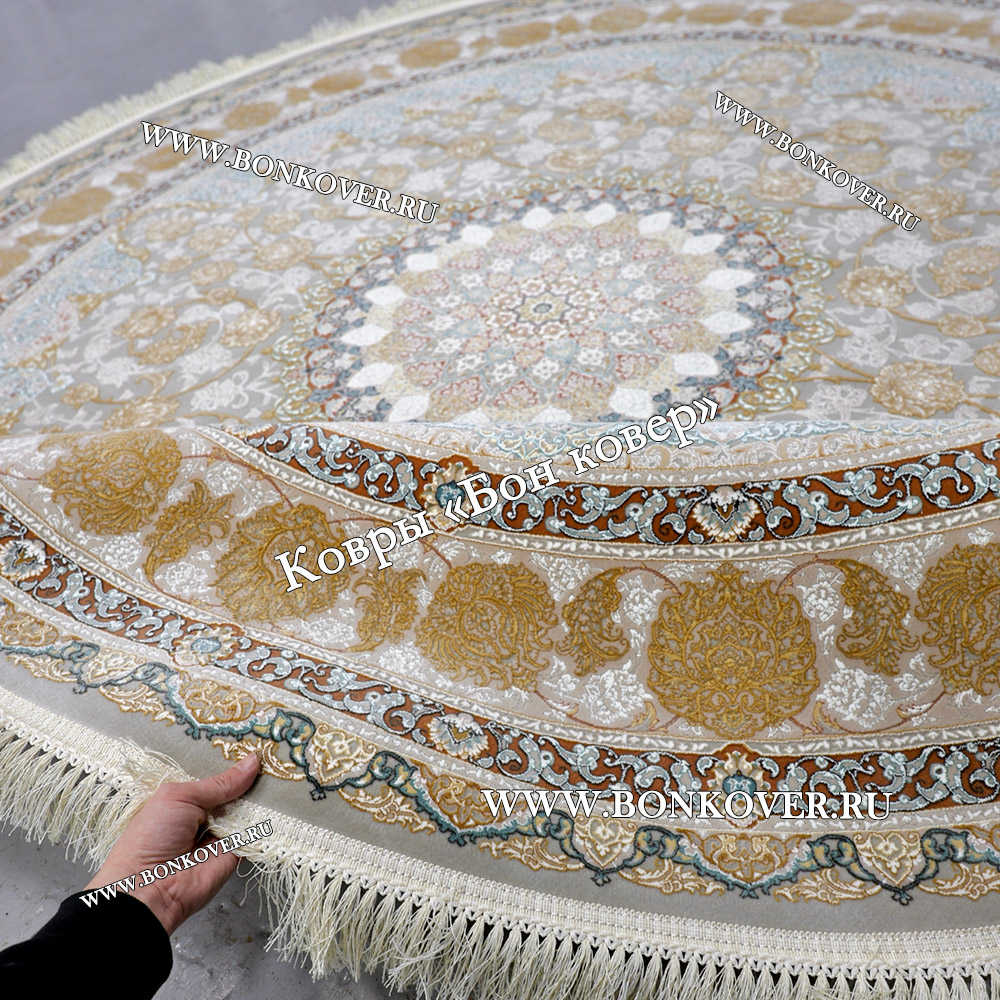 Восточный Ковер Для Гостиной Дизайн 30545 Круг станет блестящим дополнением интерьера, оформленного в современном или классическом стиле. Мягкое, но прочное, ковровое изделие обеспечивает тепло- и шумоизоляцию, отличается длительным периодом эксплуатации, пожаробезопасностью, экологичностью и высокой износостойкостью, является отличной преградой от повышенной влажности в помещении и утеплителем для холодного пола. Благодаря качеству материалов, ковер не деформируется, сохраняет первоначальный вид под тяжестью предметов мебели. За его поверхностью легко ухаживать.