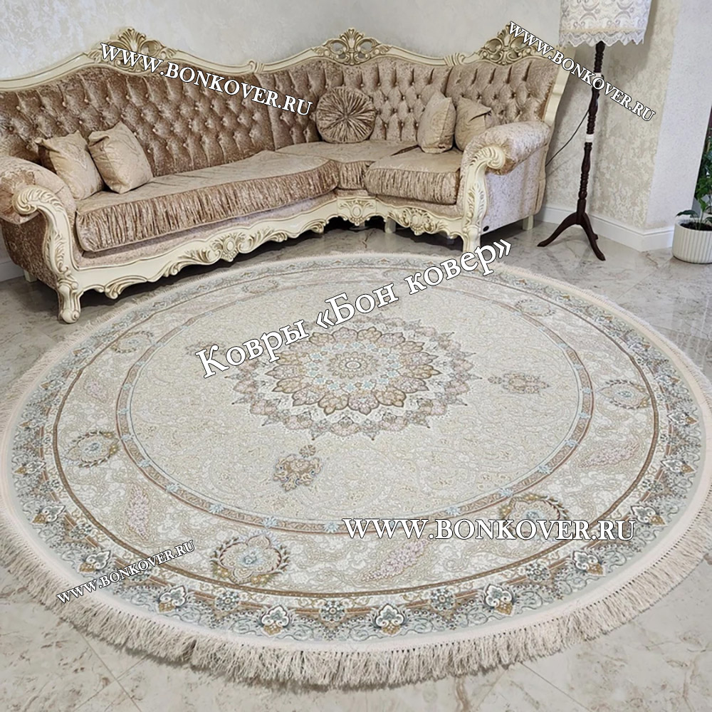 Красивый Восточный Ковер Для Гостиной Дизайн 30546 Круг наполняет интерьер вашего дома теплом и уютом, гармонично сочетает в себе изящество и красоту. Он выполнен из износостойких материалов, прочный и долговечный.