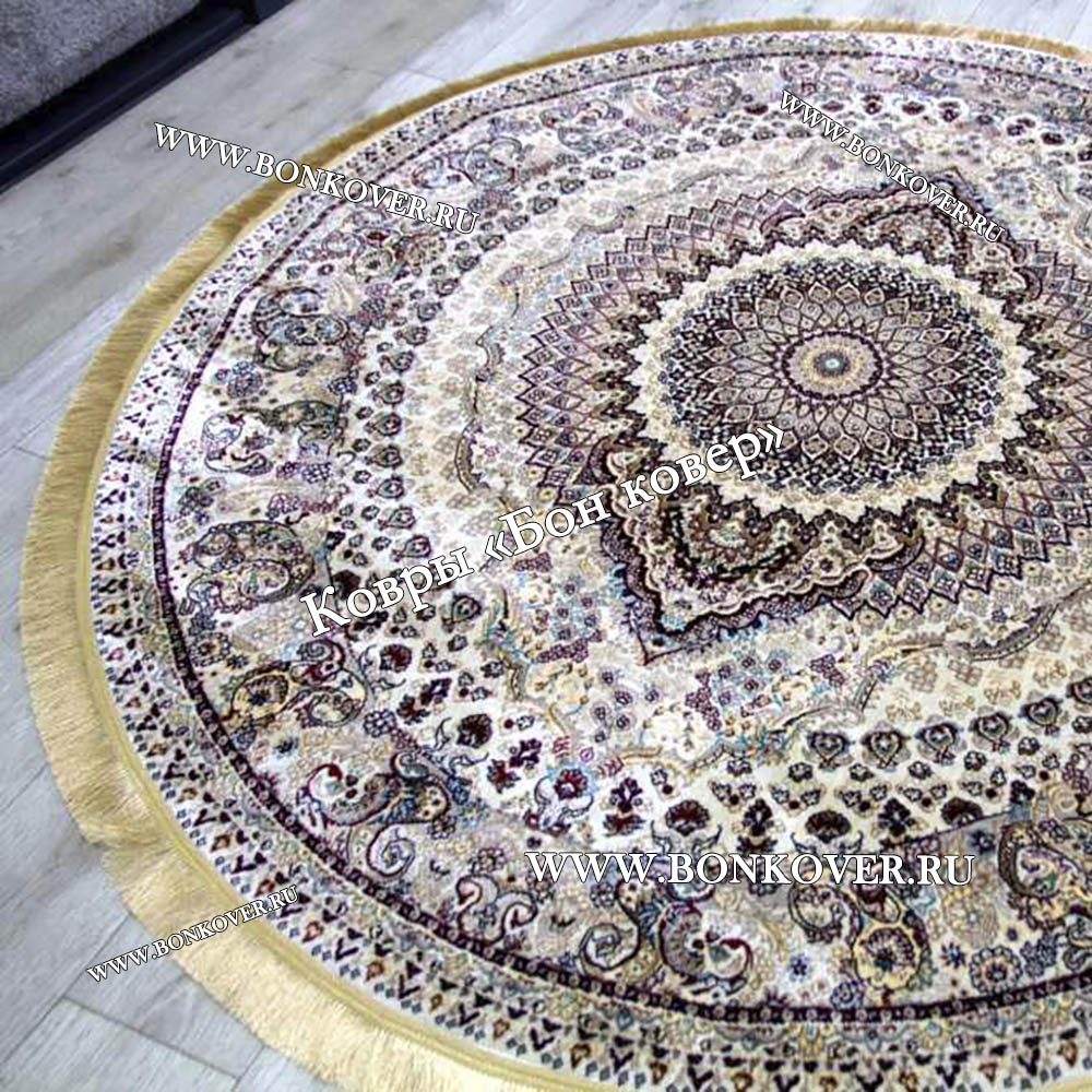 Восточный Ковер Для Гостиной Медальон Дизайн 28748 круг станет превосходным дополнением интерьера, оформленного в современном или классическом стиле. Мягкое, но прочное, ковровое изделие обеспечивает тепло- и шумоизоляцию, отличается длительным сроком эксплуатации, надежностью, экологичностью и высокой износостойкостью, является отличной защитой от повышенной влажности в помещении и утеплителем для холодного пола. Благодаря качеству материалов, ковер не деформируется, сохраняет форму под тяжестью предметов мебели. За его поверхностью легко ухаживать.