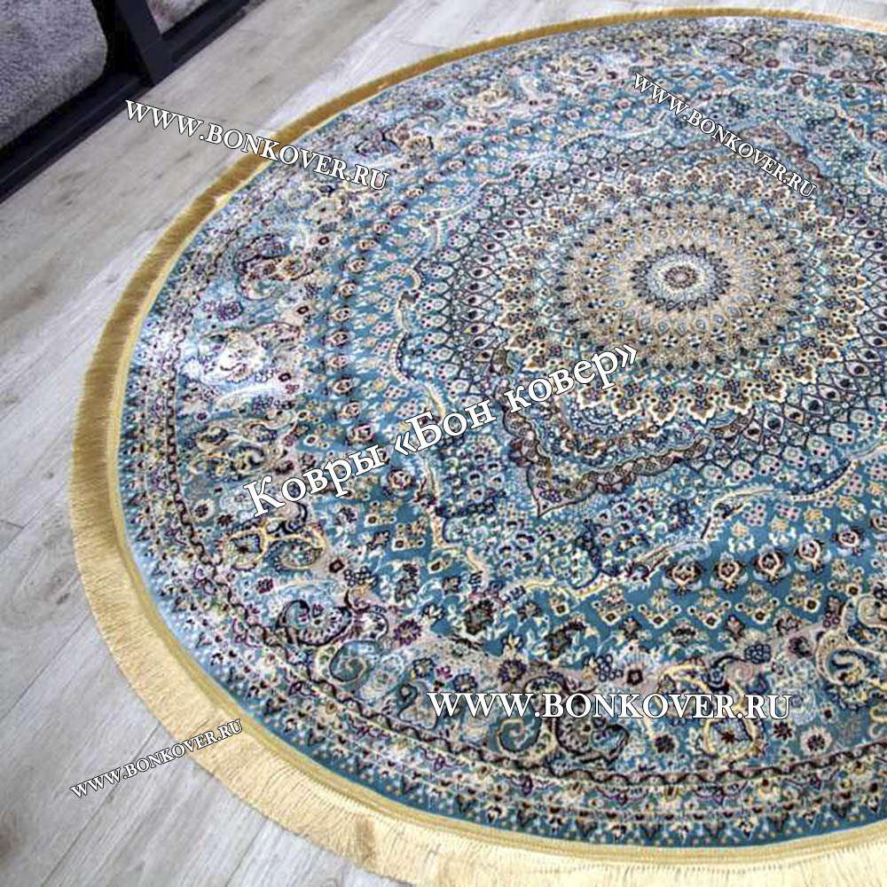 Восточный Ковер Для Гостиной Медальон Дизайн 28752 круг станет превосходным дополнением интерьера, оформленного в современном или классическом стиле. Мягкое, но прочное, ковровое изделие обеспечивает тепло- и шумоизоляцию, отличается длительным периодом эксплуатации, надежностью, экологичностью и высокой износостойкостью, является отличной преградой от повышенной влажности в комнате и утеплителем для холодного пола. Благодаря качеству материалов, ковер не деформируется, сохраняет первоначальный вид под тяжестью предметов мебели. За его поверхностью легко ухаживать.