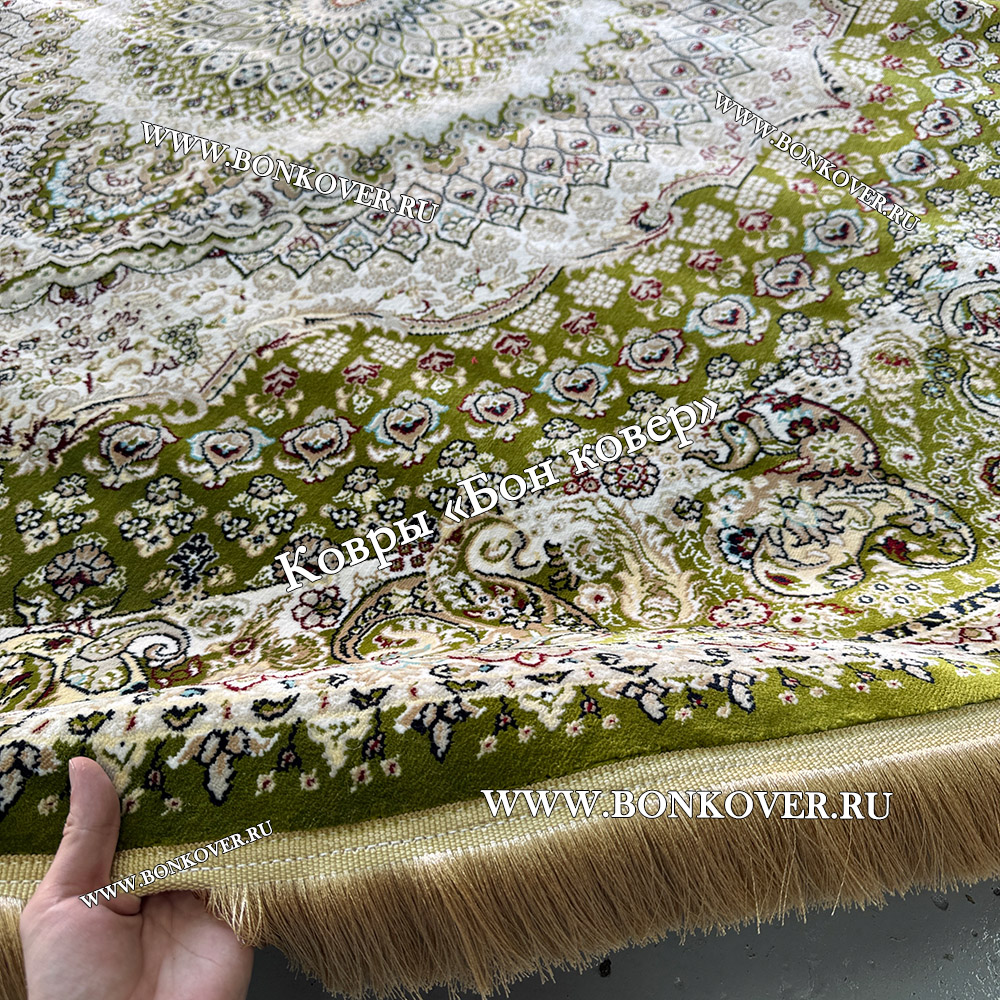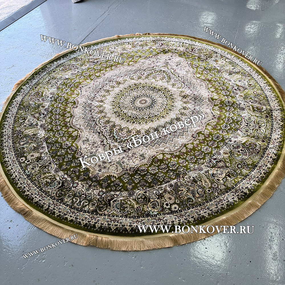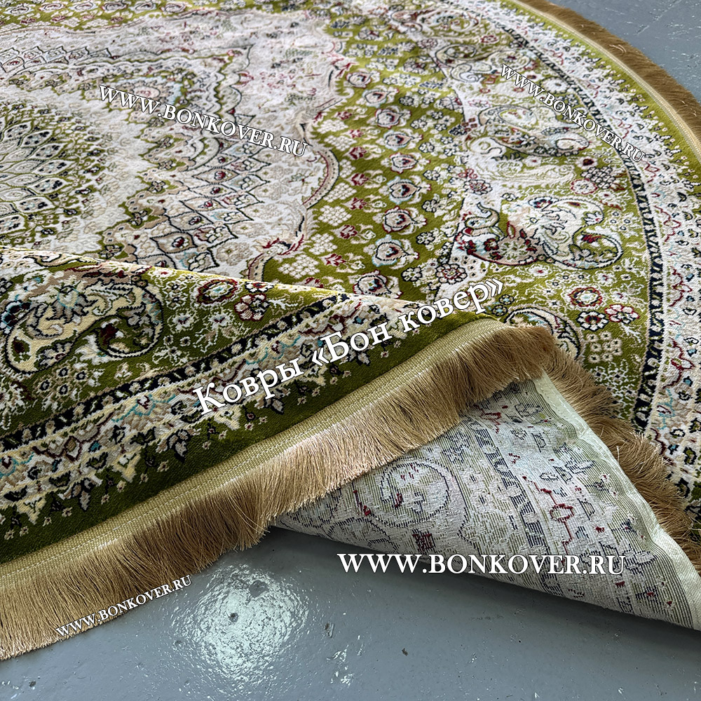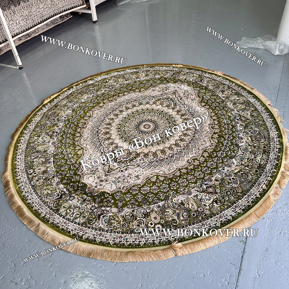 Восточный Ковер Для Гостиной Медальон Дизайн 30298 Зеленый круг станет превосходным дополнением интерьера, оформленного в современном или классическом стиле. Мягкое, но прочное, ковровое покрытие обеспечивает тепло- и шумоизоляцию, отличается длительным сроком эксплуатации, надежностью, экологичностью и высокой износостойкостью, является отличным противодействием от повышенной влажности в комнате и утеплителем для холодного пола. Благодаря качеству материалов, ковер не деформируется, сохраняет форму под тяжестью предметов мебели. За его поверхностью легко ухаживать.
